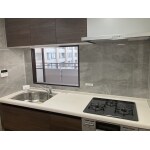 施工後もブラウンのキッチンですが、今時の大型引き出しのキッチンに変わりました。水栓の位置も今は右寄りが多いですね。(その方が食器を寄せやすいですね!)タイル貼りもグレーのキッチンパネルでとてもお掃除しやすくなりました。