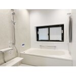 今回はスッキリと白メインの清潔感あるスッキリしたデザインの壁とそれに合わせた浴槽、シャワー部になりました。