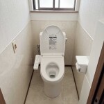 壁紙全体の貼り替えでトイレ全体が明るくなりました。 パネルの壁と床になったので、これからのお掃除のレ間もかなり削減されることと思います。 便器についても以前の物よりもかなりの節水効果が見られるものとなりました。