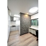 ダイニングに収納があったらと新たにカウンターを設置しました。軽い食事をとったり、ノートパソコンを開いたりと想像以上に使い勝手がよくて大満足とのこと。新たに壁を作りリビングダイニングから冷蔵庫やキッチン収納が見えないようにしました。ダークカラーのエコカラットを貼ったことでアクセントが加わりました。