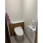収納棚付きトイレLIXILのリフォレ(現Jフィット)です。 タンク部分を棚部分に隠すことによりお手入れしやすくスタイリッシュな空間となります。