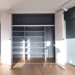 押し入れ部分は隣接する水回りに取り込み、その手前に新たに大容量のクローゼットを造作。可変式の棚を組み合わせることで、使い勝手の良さを追求した設計となっています。