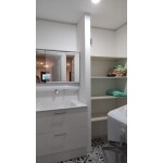 可動棚の設置で、小物やタオル類等がすっきりと片付くようになりました。