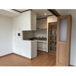 キッチンスペースにキッチン本体の収納以外に食器や家具を置く場所がないのでなんとかしたい。ただ、余り暗く狭くはしたくない。