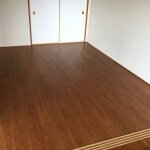 6畳和室を畳からフローリングへ張り替えました。 マンションには、遮音等級を満たした遮音材も入っているフローリングを使いますので、ペットと暮らす施主様も安心です。今回、マイオトユカLL45(ダイケン)を採用しています。 張替えにおいても段差を解消することもでき、掃除もしやすく、ペットとも過ごしやすいフローリングのお部屋となりました。