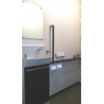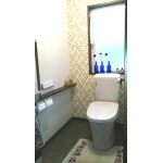 トイレの背面にイエローの明るいアクセントクロスを選ばれ、自然光の入るトイレがより一層明るい雰囲気になりました! 手洗い付のコフレワイドは、横幅が広くてたっぷり収納でき、無駄のないシンプルな外観で限られた空間にもスッキリ設置できます。