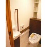 便器の後ろにすき間は手が届かない場所なので埃が溜まりやすく、お掃除のハードルがちょっと上がりますよね。。。こちらの商品は、背面キャビネットっで見えない汚れに悩まず、お掃除するときの腰の負担もかかりません!キャビネットも壁付けなので床に小物置くこともなく見た目もスッキリできる商品なので、収納力とお掃除の軽減をお考えのお客様にご提案させて頂きました。 頑丈なペーパーホルダーの二連棚は手摺のように体重を掛けても安心です。 収納力アップで、広さはそのままなので使いやすく仕上がりました