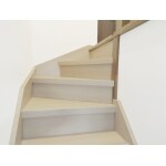 リビングリフォームに併せて階段の床のリフォームもご提案し、採用していただきました。階段の床も既存のものと同系色のものを重ね張りいたしました。