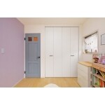 各部屋にパナソニックのベリティスクラフトレーベルの色とりどりのドアを採用し、遊び心のあるお家になりました。