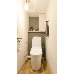 設備はお掃除のしやすさで選びました。ウォシュレット一体型のトイレですが、ウォシュレット部分が浮き上がるためサッとお手入れができます。