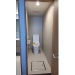 1Fトイレ。広い洗面室スペースを確保するため、トイレの位置を変更しました。