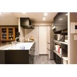 キッチンの壁を取り払い、位置を90度回転させて対面式に。開放感を感じられるように吊戸のないオープンなキッチンを設置しました。