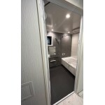 白と黒の色合いでモダンな感じになり、高級感且つ、都会的な浴室に仕上がりました。
