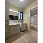 洗面化粧台はTOTOサクアを採用。 陶器製のボウルで汚れも落ちやすく見た目もシンプルでかっこよく仕上がりました。 側面のキャビネットも面材を合わせて統一感を出しました。