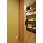 以前キッチンだったスペースに、ファミリークローゼットと納戸を設けて、衣類・生活用品を集中して収納するプランをご提案。