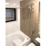 浴槽、床の断熱材が標準搭載、さらに壁断熱もオプション追加し、以前の浴室と比べるとかなり暖かくなりました。 またカワックも採用し、入浴前に浴室内を温めておくとヒートショックも防げます。 アクセントパネルは縦木目の【グレイッシュウォルナット】をご選定。 縦木目が都会的な印象です。