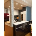 食洗機やコンロの故障、老朽化にお困りでリフォームのご相談をいただきました。 圧迫感を感じていたため、周辺の壁や吊戸棚を取り払い開放感を出しました。 抜くことが出来なかった柱は、あえてタイルを貼って目立たせることにしました。 アクセントとしてモザイクタイルをご提案し、圧迫感を感じることなくガラッと雰囲気の変わったお洒落なキッチン空間になりました。 また、天井に木目を入れたいという施主様の希望で、貼分けするために天井を一段下げました。 希望以上の仕上がりにお願いしてよかった!と大変ご満足いただけました。