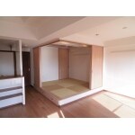 布団敷きになるため小上がりにし、冷えや硬さを軽減。 空いた床空間は収納として利用。 取り出し頻度により、畳上げ部と引き出し部で使い分けた収納です。 引き戸を閉めることで個室に早変わり!