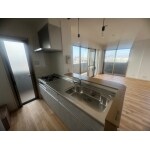吊り戸を無くしてリビング窓が見える景色をを楽しめるキッチンになりました。