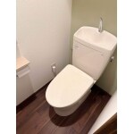 T社ピュアレストQRとアプリコットの組み合わせです。 丸みのあるかわいい形に、てすりや棚の木調で温かみのあるトイレになりました。 自動で「きれい除菌水」をふきかけてトイレ全体の汚れを防いでくれる機能も! キレイを保ちやすいのも良い所です^^
