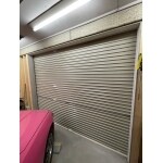 車が出入りしやすい大きく、扱いやすいシャッターに交換させていただきました。 シャッター横の外壁は、色見を合わせた板材で仕上げさせていただきました。