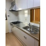 LIXIL「シエラ」のキッチンに交換しました。木調のカップボードに合うように、色はベーシックな白を選びました。
