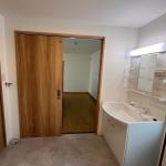 キッチン窓の横ラインに壁を立て、洗面所スペースを作りました。