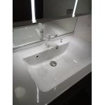 水栓から水がポタポタ落ちており、これを機会に狭く広い洗面台に替えたいとのことでご連絡いただきました。 タッチレス水栓は望んでいないが、水栓の後ろに余裕があり、水栓周りの掃除がしやすいものが希望とのこと。