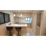 壁付I型システムキッチンからオープン対面キッチンで開放感があり、会話も料理も楽しめる空間へ