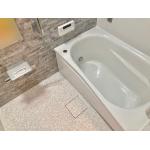 水垢などの汚れが目立ちにくいグレー色の壁をアクセントに、すっきりとした浴室をお選びいただきました。