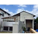 左手は昔に増築された部分で外壁はブリキの波板貼りでした。 インナースペースになっている玄関前の壁には後付けの給水配管があり、せっかくなので今回の工事で隠ぺい配管にしました。