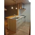 LIXIL「シエラ」をお選びになりました。吊戸棚を撤去しペンダントライトでおしゃれなキッチンに。引き出し式タッチレス水栓で機能性もアップしています。床の色も明るい木目調で空間が明るくなりました。