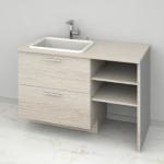 洗面室に、丸い照明付きのミラーをバランスよく、見た目にも美しく配置していただけると嬉しいです。 また、浴室のスペースを少しコンパクトにした分、洗面所側にはゆとりのある空間を確保していただき、洗面化粧台にTOTO製のドレーナを設置していただきたいと考えております。シンプルでありながら洗練されたデザインと、使い勝手の良さに魅力を感じています。 さらに、洗濯機上のスペースには、オープン棚と室内物干しを設置していただき、収納力と実用性を兼ね備えた、日常的にも使いやすい快適な空間に仕上げていただければと思います。