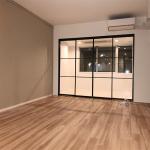 今回のリビングリフォームでは、開放感と機能性を高め、洗練された空間へと生まれ変わりました。LDKに入るドアには透明で光を通すデザインを採用し、自然な明るさが広がる心地よい空間に。スイッチ類は左側の壁に集約し、すっきりとした印象と使いやすさを両立しました。 また、変形していた部屋の区画を見直し、洋室との間の壁を撤去して一体化。広々とした開放的なリビングへと生まれ変わり、ウォークインクローゼットは新たに機能的なレイアウトで再構築しました。天井には折り上げ天井を採用し、奥行きと高級感のあるデザインに。さらに、東南側の窓の前にはサンルームを設け、透明な間仕切りを取り入れることで、外の光を感じながらも快適に過ごせる空間を実現しました。 西側の壁には、テレビとTVボードを壁付けできるよう下地をしっかりと施工。テレビ背面にはエコカラットを貼り、デザイン性と調湿機能を兼ね備えたアクセントウォールを演出しました。広がりのある快適なリビングで、心地よい時間を過ごせる空間へと生まれ変わりました。
