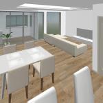 リビングのリフォームでは、開放感と使いやすさを重視し、洗練された空間を希望しています。LDKに入るドアは透明で光を通すデザインにし、スイッチ類は左側の壁にまとめて動線を整えたいです。変形した部屋の区画を見直し、洋室とつなげて広々としたリビングにし、WICは再構築を希望します。天井は折り上げ天井にし、奥行きと高級感を演出。東南側の窓前にはサンルームを設け、透明な間仕切りで明るさを活かします。西側の壁にはテレビとTVボードを壁付けできるよう下地を入れ、背面にはエコカラットを貼ってデザイン性と機能性を両立。窓にはバーチカルブラインドを採用し、スタイリッシュな印象に仕上げたいです。