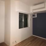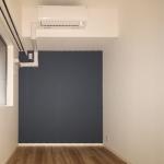 壁の一部に深い群青色のアクセントクロスを採用し、落ち着いた雰囲気を演出。カーテンボックスと巾木を白で統一することで、空間全体を引き締め、洗練された印象に仕上げました。また、WiFi環境をより良くするために通信の安定性に配慮した施工を行い、快適に作業できる環境を整えています。