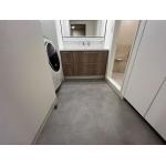 石目調のフロアタイルが印象的な洗面室