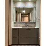 浴室をリフォームする計画でしたが、洗面所のクロスもからむという事で 洗面所もご一緒にご依頼いただきました。 トイレの内装時に使用したタイル風のクロスを、洗面所でもリンクしてアクセントとして使いたい とご希望がありました。 娘さんが選んでくださった天井と壁クロス、アクセントとしてクロスにデザインを入れて とても素敵なコーディネートになりました。