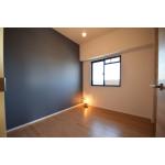濃いブルーの壁紙がとてもかっこよく仕上がりました。