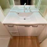 今回は、洗面化粧台の下台のみ、ぴったりジャストサイズに合わせ交換いたしました。それに伴い給水給湯配管を更新し、排水は横引きトラップで切り回しを行い、スムーズな排水と安心をプラスしました。
