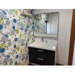 長年使用された洗面台は、収納力や清掃性に不便さがあり、鏡やキャビネットの劣化も目立っていました。