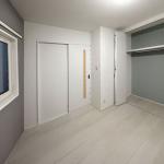 洋室(2) こちらのお部屋は、丁度真ん中にあたるお部屋。すべてのお部屋に同じようにクローゼットが配置されています。壁にはハンガー長押も取付しました。