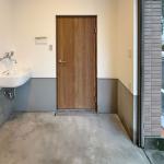 元々大きな車庫や倉庫、事務所として使われていたガレージを居住空間へとリノベーションするにあたり、その一部を自転車置場と、季節物などを収納できる物置として残して整えてほしい、というご要望をいただきました。場所は玄関のすぐ横にあるシャッター付きのスペースで、そこから玄関へ直接入れるようにしたいとのことでした。また、以前から使っていた簡易的な手洗い場も活用できるようにしてほしいというご希望もありました。
