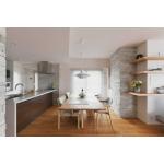 寝室の壁を斜めにすることでリビングダイニングを一望できるレイアウトにしました。