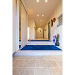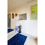 既存の広さを活かしてギャラリースペースを設けました。 また、可動棚付きの収納スペースは来客が多いときでも荷物を置くことができ、利便性の高い玄関に。 また、ご主人様のゴルフグッズを収納できるよう土間続きのクロークボックスをプランしました。