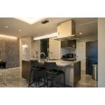 ご希望のデザインを明確に提示いただき、“非日常空間”をテーマに色や素材を吟味し、お客さまとイメージを共有しながら進めました。こだわりのキッチンや床のタイルなど新しくする部分と残す個所があったため、仕上げや収まりにも留意しています。色味のトーンを統一して間接照明も加わり、ゆったりくつろいでいただけるお住まいに変わりました。