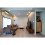 ほとんど使われていなかった和室をなくし広いLDKに。和室と押入れを撤去してリビングを拡大し、隣にウォークインクローゼット兼ネコちゃんスペースを設けました。リビングはコーナーごとにクロスを貼り分けて、落ち着きのある印象に仕上げています。