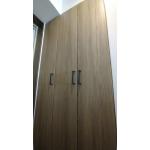 間口に合わせた特注品をご用意しました。 既存のドアとも馴染むグレーのお色味でお選びいただきました。ブラックの把手がアクセントになっています。