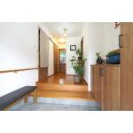 玄関の床にもこだわりの無垢材を使用しました。 無垢の木の温もりや質感が、玄関空間を一層引き立てています。