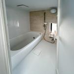 水まわりの配置は、玄関を入ってすぐ前の部屋全体の中央に集まっており、既存の給排水管もその中央に設けられていました。そのため、水まわりを中央に集約し、給水・給湯配管の切り回しを行いました。 二か所ずつあった水まわり設備を一か所にまとめることで、左右のお部屋のスペースにゆとりが生まれ、新たに一部屋を設ける設計をご提案いたしました。 浴室にはTOTOのマンションリモデルWTシリーズを採用。限られた空間でもしっかりくつろげる設計で、高断熱浴槽、節湯水栓、出入口の段差解消、開口幅の拡張など、子育てエコホーム支援制度の対象となる仕様を取り入れています。白を基調とした明るく清潔感のある浴室に仕上がり、デザイン性と快適性に加え、コスト面や家計の節約にもつながるご提案となりました。